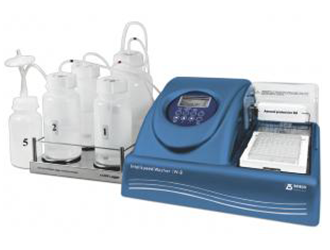 該單元有100個用戶定義的程序。標(biāo)準(zhǔn)版本配有8通道用于分配/抽吸的清洗頭,3個用于清洗和漂洗溶液的瓶子,一個廢液瓶和一個帶過濾器的瓶??蛇x的4通道洗滌液重量記錄儀,4 CHW記錄儀。